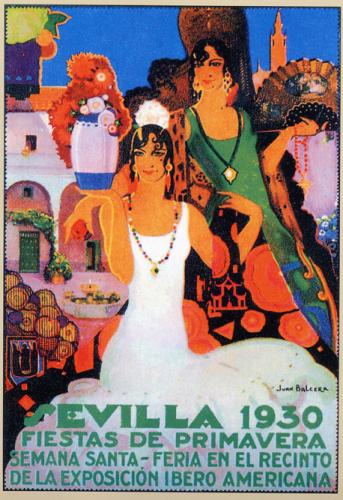 Curioso cartel donde se anuncia la Feria de Sevilla en 1930 en el recinto de la Exposición del Sector Sur, a donde se trasladó eventulamente el recinto ferial en vez del Prado de San Sebastian |