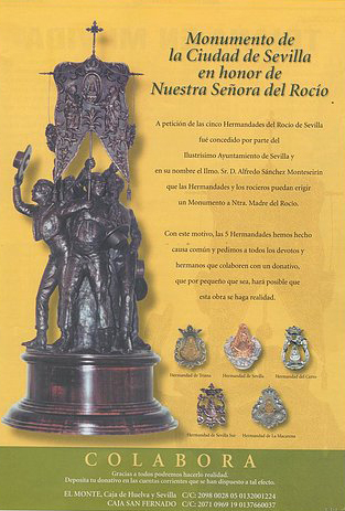 Pues como les decía, en al destruida Puerta Osario derivada en 1868 ,en su parte inferior había una capilla, tipo a la que hoy existe en el Postigo del Aceite dedicado a la Pura y Limpia, dedicado a la Blanca Paloma . Este proyecto de recuperar una advocación perdida en esa zona, no cuajo, llevándose el mismo a la zona del puente del Patrocinio lugar de salida natural hacia el Rocío, ( con lo agradecida que le debe estar la empresa de autobuses Damas , al Rocío y Matalascañas ) y que por ahora ha quedado en nada .( recordemos en este punto que en Sevilla ya hay un Monumento a la Virgen del Rocío ) , que caso de retormarse se deberia de ampliar con la sexta Hermandad Rociera Castrense en Sevilla .-