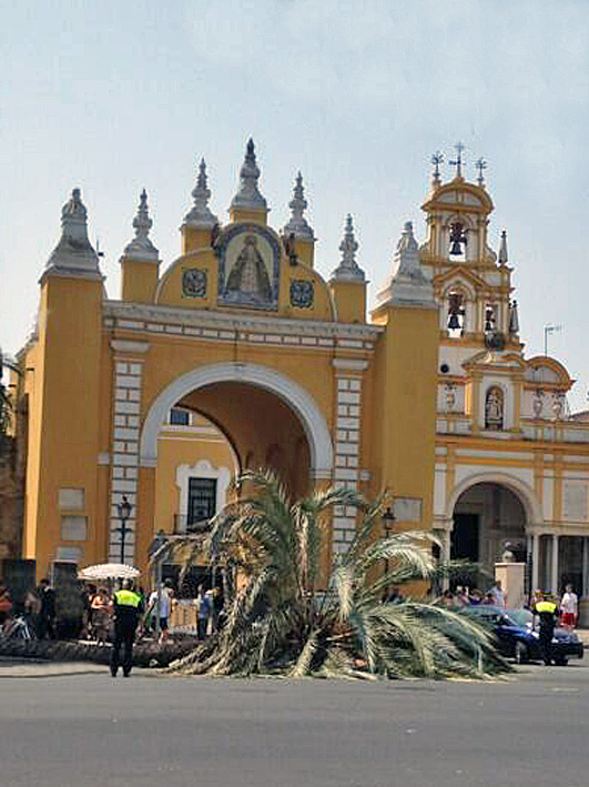 dio lugar a que ayer esta palmera cayera en acto de servicio frente al Arco