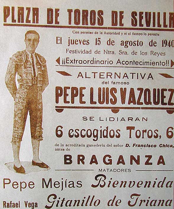 Toma la alternativa en la Maestranza de Sevilla el 15 de agosto de 1940, siendo su padrino Pepe Bienvenida y testigo Gitanillo de Triana. El 20 de octubre de ese año, confirma la alternativa en Las Ventas de manos de Marcial Lalanda y Rafael Ortega "El Gallo". A la corrida asiste, por invitación de Franco, el dirigente nazi Heinrich Himmler que estaba de visita en España.