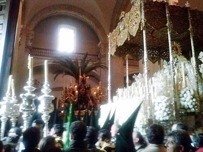 La Macarena en el altr rmayor del Salvador y al fondo el paso del Cristo del Amor