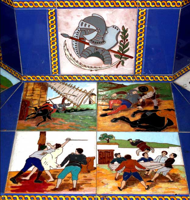 Tambien le llamó la atención una serie de bancos con motivos del Quijote que le trajo a la memoria la GLORIETA DE CERVANTES de nuestra Plaza de Ámerica .-