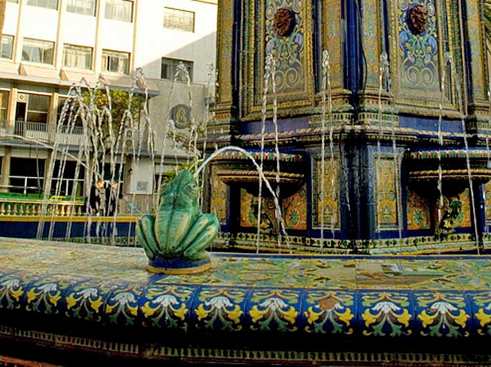 La hermosa fuente central que hay en la meritada Plaza Alta algecireña con clara inspiracion en LA FUENTE DE LAS RANAS DEL PARQUE DE MARIA LUISA.-