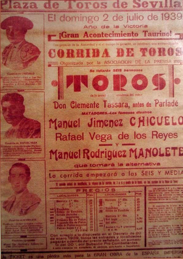 1939, con la Guerra Civil recien terminada, tomaba la alternativa hace setenta