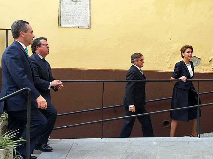 Fue seguido del ministro Montoro, que en este caso supongo no habrá encargado nada a los inspectores de la Agencia Tributaria para este evento, pues ya iba él . Ccuriosamente no habia mucha expectación, vecinas que iban con sus carros de la compra o guiris que contemplaban todo esto con la misma cara de desconcierto que ven una procesión de impedidos . No hubo ni gritos, ni insultos, ni inevitables tontos de banderitas republicanas, ni aplausos, solo una silenciosa y respetuosa curiosidad .-