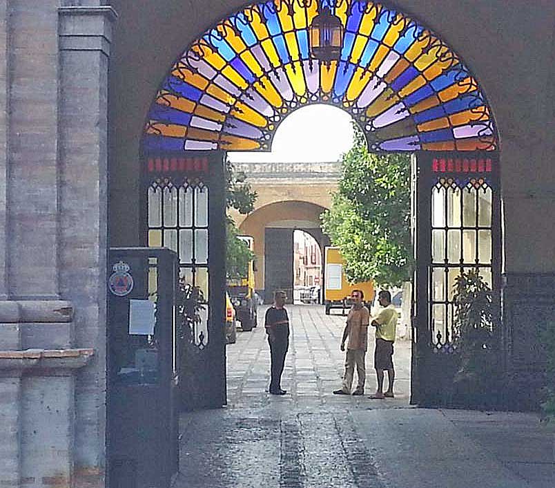 Que pena que no coincidiera con esta procesión, con la grabación de otra una pelicula como "Grupo 7" , que corrieron y saltaron sus anchas por todas las cubiertas de este histórico edificio que por lo visto para ese rodaje milagrosamnte si estaba en perfecto estado.- Quede aqui el testimonio de este desafortunado recorrido, por la calle Portacoeli y por Eduardo Dato con las puertas de la Fábrica de Artilleria cerradas a cal y canto . Asi cuida la Sevilla oficial , su rico patrimonio inmaterial del úncio Corpus vespertino y que no se celebra en Junio en nuestra ciudad , mientras una Hermandad se esfuerza año a año en cuidarlo y mejorarlo para que este en perfecto estado de revista .-
