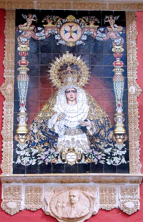 Por aquello de que hoy es la festividad del Dulce Nombre de Maria, hoy les traigo este lienzo cerámico dedicado a la Dolorosa de dicha advocación de la Hermandad de la Bofetá ( se pronuncia gofetá ) de Sevilla .-