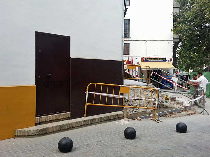 Un servidor lo ha comentado mucho veces el extraño concepto de economía de la (des)adminsitración Zoido , donde parece que se gasta por gastar, en cosas absolutamente innecesarias, mientras para otras que llevan años manga por hombro no hay dinero . Esta transformación en horterada junto a la Maestranza , con el sabor que tiene este enclave encima saldrá muy baratito por solo mas de 70.000 euros . En esta foto pueden ver mejor la innecesaria barbaridad que han hecho .-