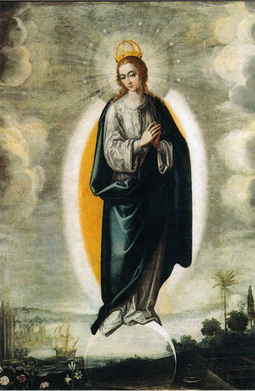 Las bases de la iconografía de la Inmaculada, las dejó sentada Pacheco en la Sevilla del siglo XVII debido a su excelente relación con el cabildo catedralicio gracias a su Academia Literaria, tertulia en la que participaban los más notables personajes sevillanos de su tiempo, que se reunían en su casa. La figura de la Inmaculada la repitió insistentemente durante unos quince años (1621-1635) existiendo apenas variaciones.-