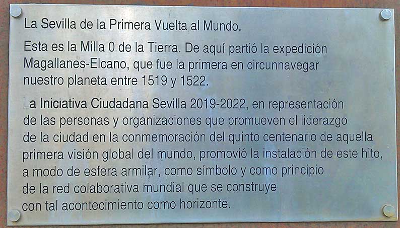 A este monumento se le llama "Milla 0 de la Tierra" por ser de este punto ( chispa mas o menos ) desde donde partió Juan Sebastián Elcano y Fernando de Magallanes para circunvalar la Tierra por primera vez, sin duda una de las gestas mas importantes de la Humanidad, que comenzó tal día como hoy el 10 de Agosto de 1519 y que alcanzo Elcano tres años después de partir (1519-1522).-