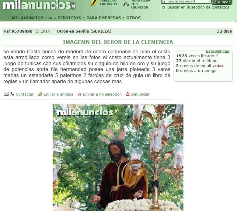 no pertenece a una Hermandad ) y lo venden en Milanuncio, como si fuera un