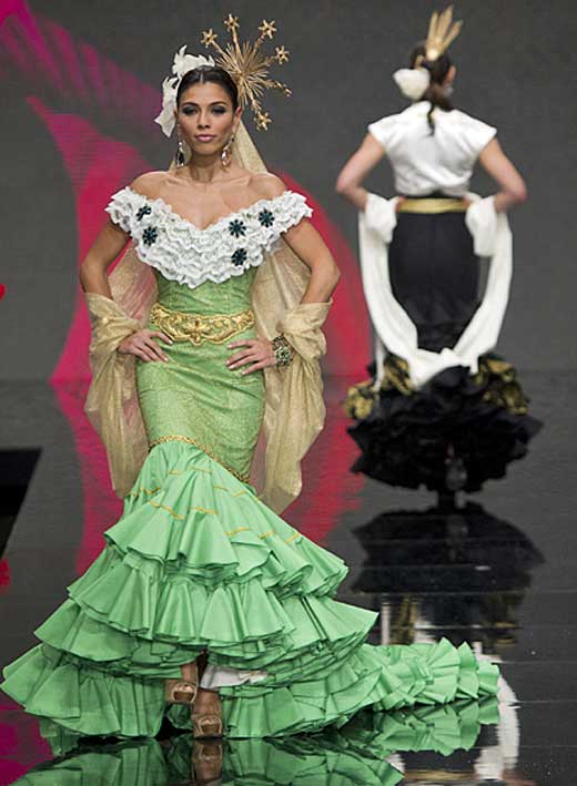 En el Simof 2012 , una modelo iba vestida de "Macarena flamenca" y no solo nadie la invitó a que se marchara ( o mejor dicho a su diseñador ), sino que de propina el público hasta aplaudía y todo en plena Sevilla . Los mismos que hoy posiblemente, se horrorizan con la camiseta superior .-