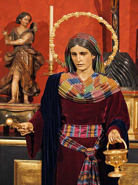 Tras esa mamarrachada de San Bar-Tolo, promocionado por la multinacional Coca Cola , en pro de apuntalar a sus clientes inmediatos en crisis, los bares, quizás olvidándose que la crisis real esta en los mediatos o clientes finales, a saber los consumidores, pues la ausencia de estos lleva al cierre de aquellos. Que por cierto, dado el absoluto desbocamiento de veladores (mas de 13.960 con licencia para molestar , sin licencia ni les cuentos ), dada la aprobada ordenanzas del pro ruido en Zoidolandia, cada vez que se cierra un bar en Sevilla, es como si le tocara la loteria a un vecindario, pues hay vecinos que pueden descansar, hay vecinos que dejan de oler a fritanga de aceite mas que quemado ( no se comprende como hay personas que se comen lo que sale de esas freidoras o cocinas ), y hay hasta peatones que pueden andar por las aceras, sin hacer slanlom de esqui alpino, entre mesas, sillas y sombrillas escupe agua vaporizada y propagadoras de legionela. Algún dia, tendremos la suerte que nos toque un alcalde y un consistorio a esta desafortunada ciudad, como Dios manda, poniendo orden , a estas patentes de corso para no dejar descansar, ensuciar y limitar la movilidad .- Tras lo de la "bartolada" , es mas que necesario recordar algunas cosas que se dan por obvias. Señoras, señores, niños y niñas , Coca Cola , hoy es Santa Marta la hermana de Lázaro y de Maria , residentes en Betania, pintada por Velázquez y tallada por Sebastian Santos en una talla antológica por cierto y verdad, y que vemos cada Lunes Santo en el Misterio del Traslado al Sepulcro flotar entre una nube de incienso iluminado por cirios azules .- Santa Marta no tenia un bar con mas de 25 veladores en Betania, con especialidad en salmorejo o caracoles, es mas bien conocida por recriminar a su hermana María, por estar escuchando la palabra de Jesús en vez de ayudarla a preparar el almuerzo , por lo que después fue corregida por el Maestro, al que sirvió varias veces como consta en los evangelios de ahi que sea es patrona de cocineras, sirvientas, amas de casa, hoteleros, casas de huéspedes, lavanderas, de las hermanas de la caridad, del hogar.- Es mas conocida en Francia por haber logrado en tierras francesas, a donde marchó con sus hermanos a evangelizar, y en particular en Tarascón de donde es patrona por haber vencido a la Tarasca un dragón al que venció con agua bendita de ahí su representación iconográfica del acetre y el hisopo ( en Semana Santa porta los pasionistas clavos de Cristo ) . Pero tampoco hay que irse tan lejos tambien es patrona de la vecina localidad sevillana de La Algaba .- Hoy esta en Besamnos en San Andrés, por lo que señores de la Coca Cola, en pro de sus queridos bares, vayan a rezarle a la auténtica patrona, para que la clientela se queden Virgencita como estaba, y ya de paso se marcan un detalle y le podria llevar hasta un ramo de flores, le saldrá mas barato que poner a una banda de cornetas y tambores , pegando trompetazos y tamborazos, totalmente fuera de contexto, sin llevar ningún paso delante .- |