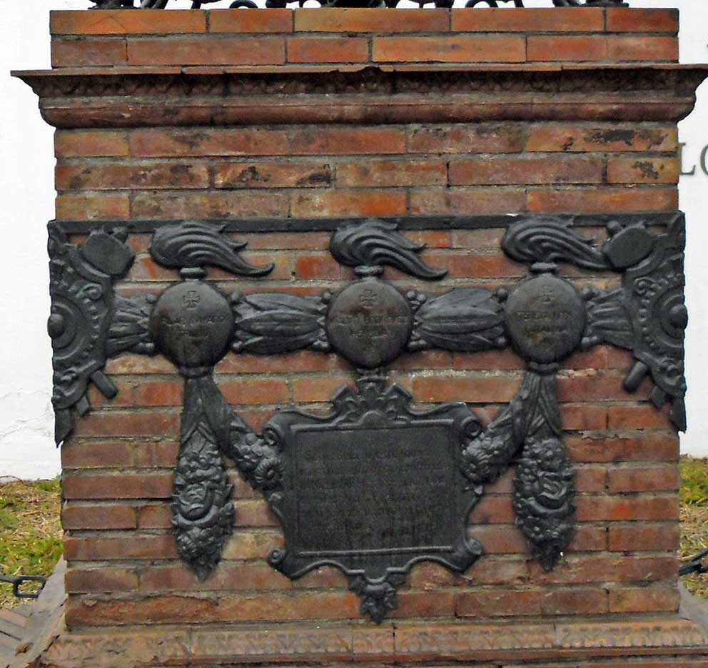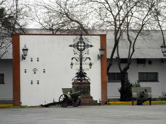 Detalle del basamento con los ardonos de forja dentro del inconfundible emblema del arma de Artillería con una Cruz y dentro los nombres de los fallecidos .-