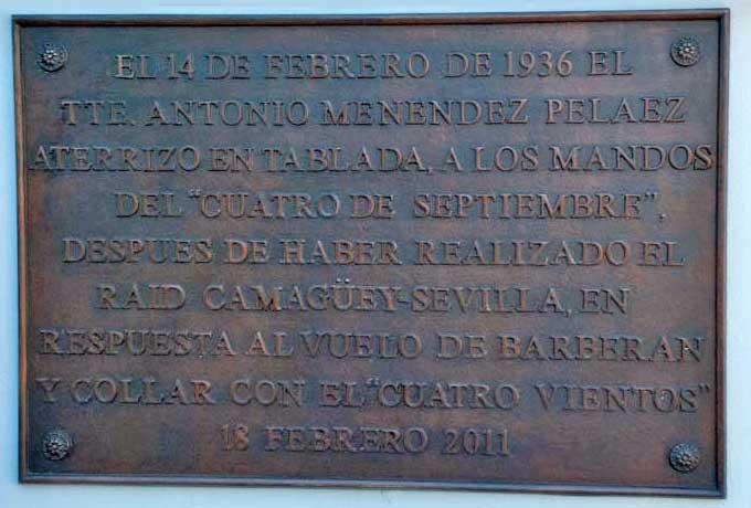 Aprobado el vuelo, partió de Camagüey, el domingo 12 de enero de 1936, y que concluiría en Tablada, Sevilla, el 14 de febrero ( tal día como ayer ) Se considera una de las páginas más gloriosas en la historia de la aviación cubana. Menéndez lo realizó completamente solo (recorrió más de 7000 millas, en 9 etapas y empleó para ello 33 días, 10 horas y 20 minutos; a razón de unas 115 millas por hora y en un tiempo total de vuelo de 61 horas). Fue de esta forma el primer aviador de habla hispana en cruzar el Océano Atlántico en dirección a España teniendo por destino el aerodromo de tablada en Sevilla , donde hay colocada una placa al cumplirse el 75 aniversario de esta gesta :