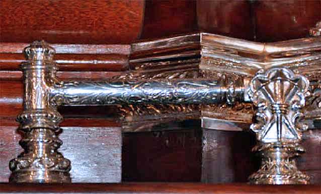 El de la foto superior esta en el paso del Cautivo del Tiro de Línea y que estrenó en el 2010, un llamador que incluye una gubia del tallista Antonio Martín , autor del paso fallecido en el mes de enero del mismo año .- El mismo fue donado por la cuadrilla de costaleros bajo el diseño de Aguado Hernández y Francisco Verdugo, tallista que ha cedido la gubia de D. Antonio Martín y persona encargada de realizar el modelo tallado en madera, siendo ejecutado en el taller de "Orfebrería Andaluza" que regenta Manuel de los Ríos y que está basado en el paso del Señor como homenaje del malogrado tallista .-
