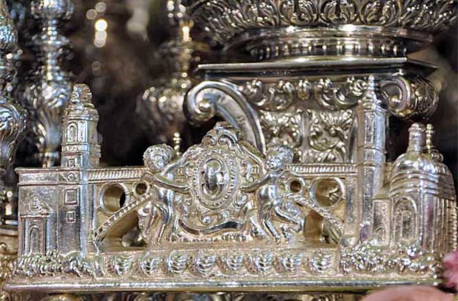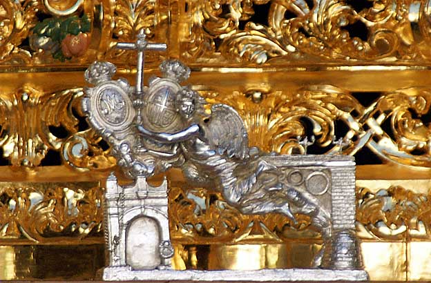 Llamador del paso de Misterio de la Hermandad de la Paz uno de los puentes de la Plaza de España realizado en Orfebrería Andaluza. 2006