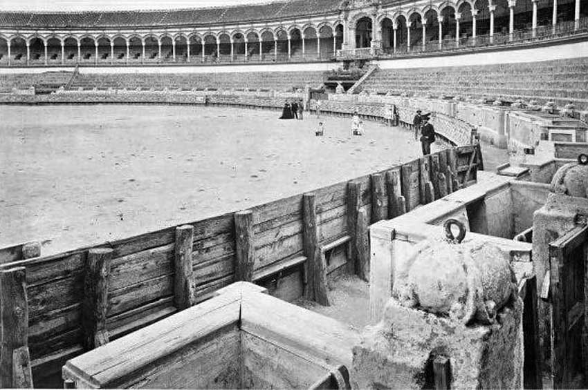 localidades de barrera en cajones de obra, separada por unos profusamente