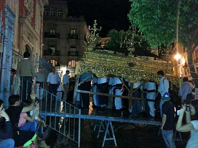 que otros llaman rampla ) , con costaleros y pasos , entrada en el Salvador