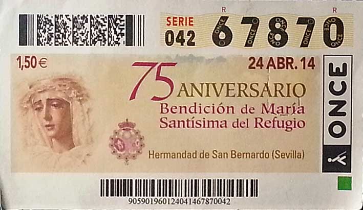 CUPÓN DE LA ONCE A LA VIRGEN DEL REFUGIO