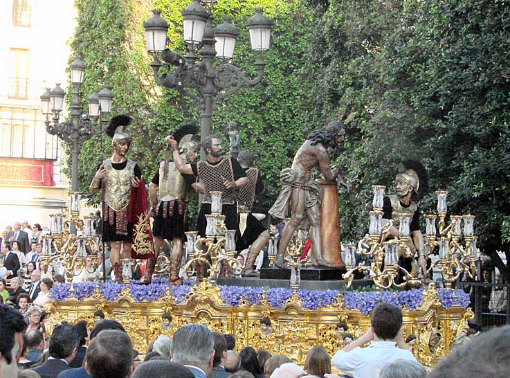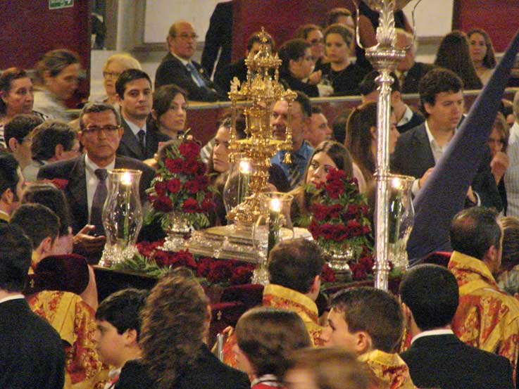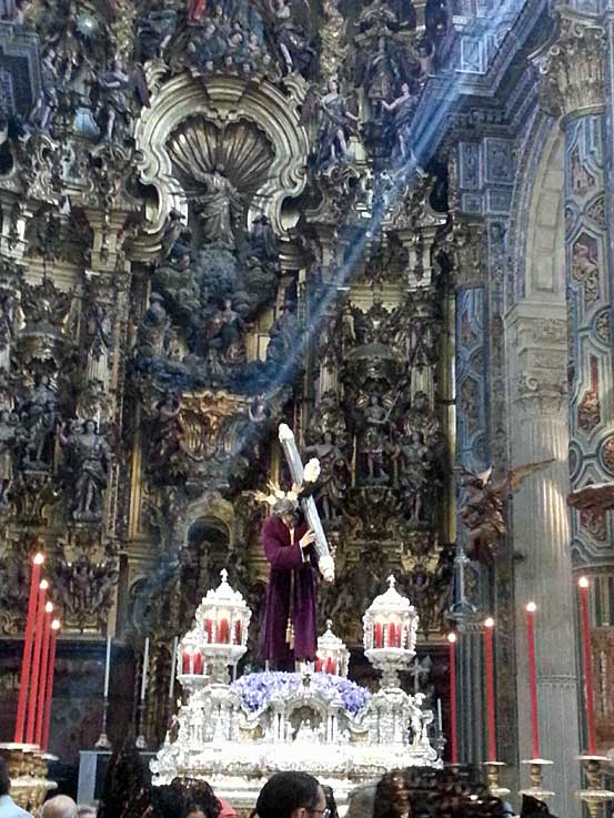 La majestuosidad del Señor de Pasión una mañana de Jueves Santo sevillano, donde el Sol entraba a raudales por las vidrieras del Salvador ( hoy parque temática colegiata ) |