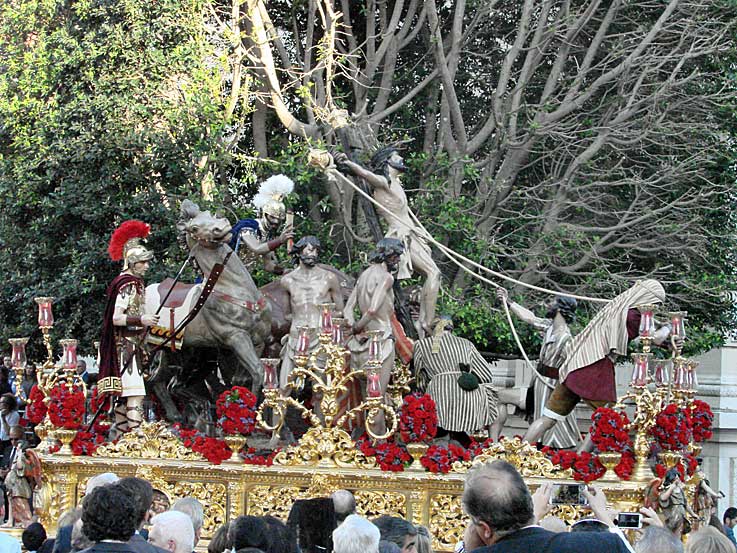 Estrena cuatro cartelas ejecutadas en plata de ley en el paso de la Coronación de Espinas. Orfebrería Triana .-