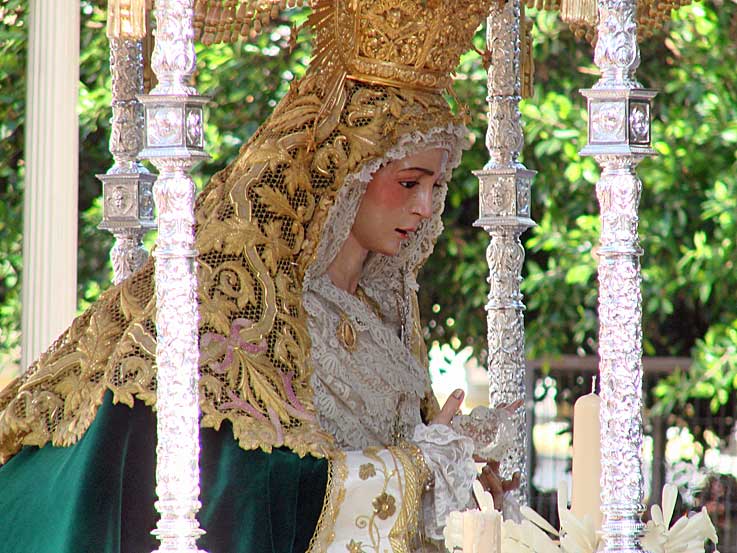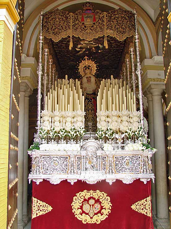 15 de Abril de 2014 Un Lunes Santo que comenzó muy nublado, incluso llegó a llover un poco por la mañana y a chispear en las primeras horas de la tarde, culminó con todo éxito luciendo el Sol .- Estas tres primeras fotos corresponde a la Hermandad del Poligono de San Pablo por Luis Montoto , ante su parada protocolaria de cortesia ante la Hermandad de San Benito , donde se pudo ver una estampa inusual la Virgen de la Encarnación en la puerta abierta que da a la meritada calle Luis Montoto .- El palio de la Virgen
