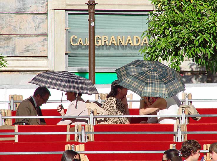 Paraguas usados como sombrilla para el Sol y hasta abanicos El Cautivo de Santa Genoveva que este año ha sido muy restaurado Santa Marta y la iluminación capricho del Sol San Gonzalo con su intermimnable y desesperante cuerpo de nazarenos Vera Cruz Ciriales tras su palio Las Penas de San Vicente La Hermandad de la Aguas
