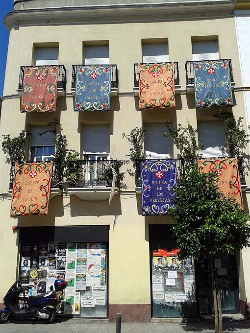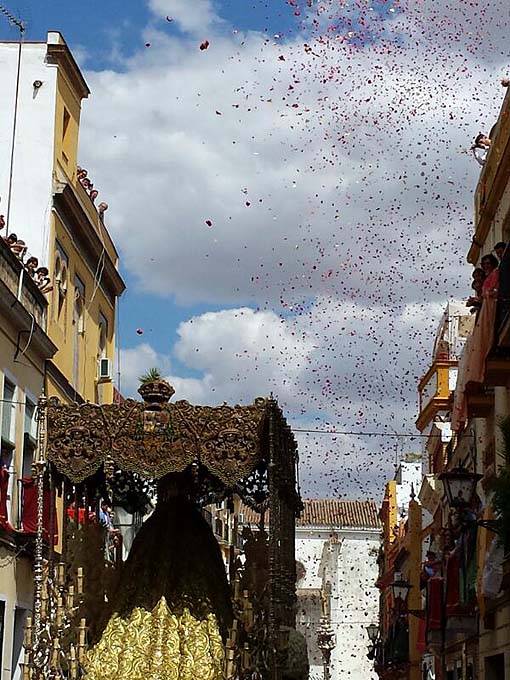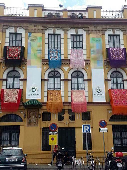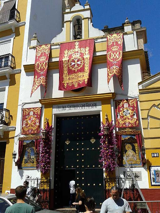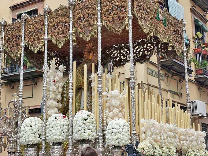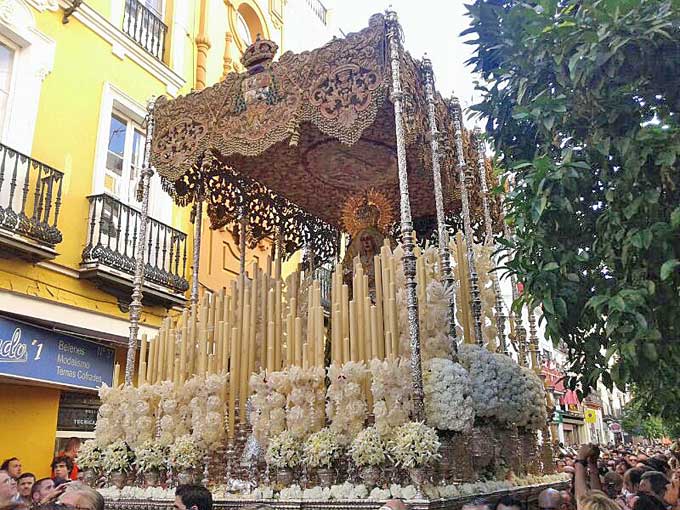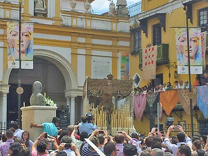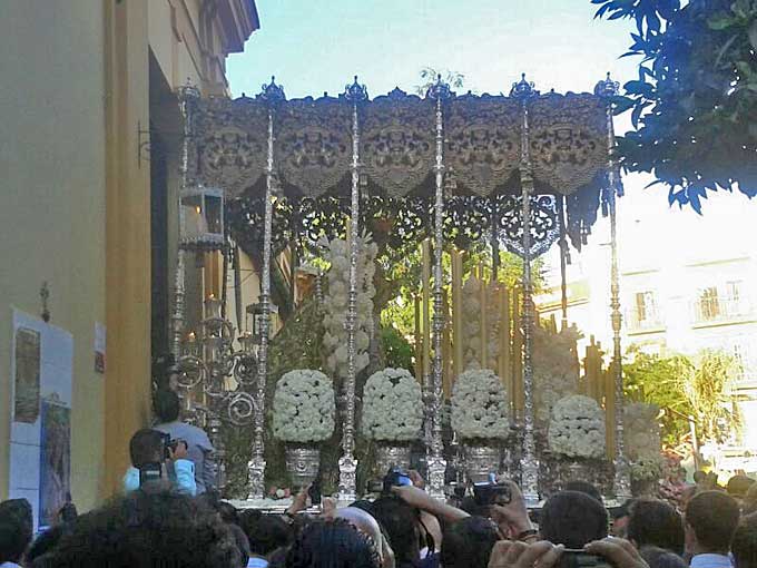 El palio de la Macarena ante el convento de las Hermanas de la Cruz de Sevilla