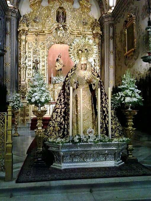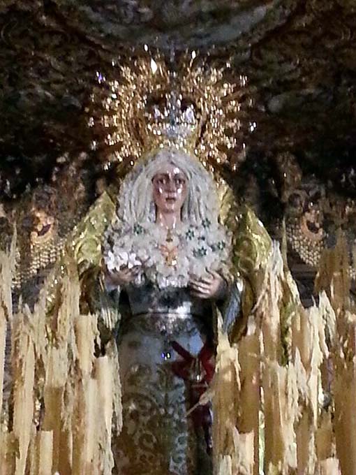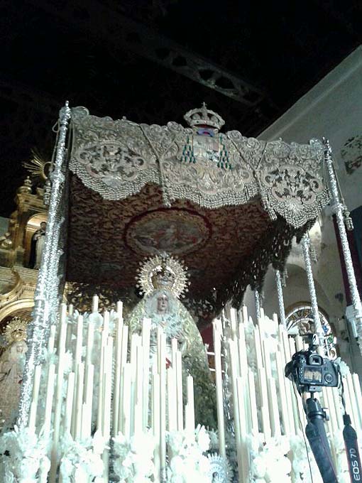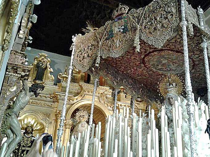 El palio de la Macarena en la Iglesia de la Anunciación