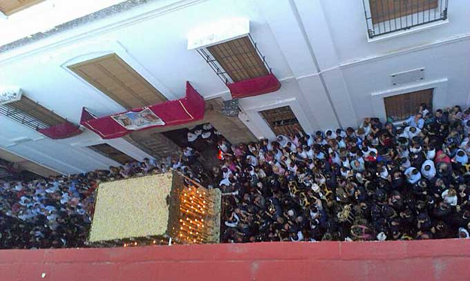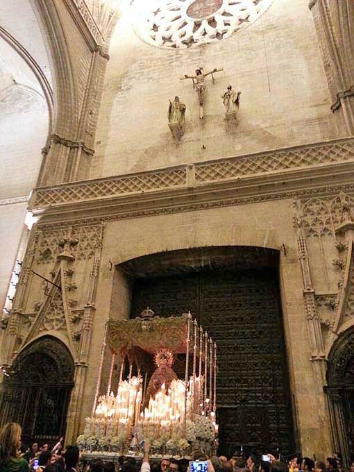 El palio de la Macarena entrando y saliendo de San Juan de la Palma