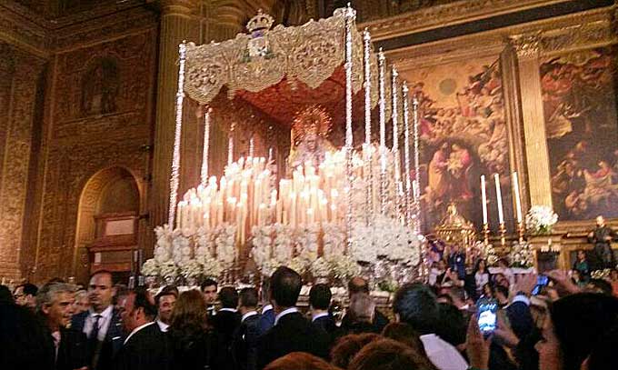 El palio de la Macarena dentro de Montesión