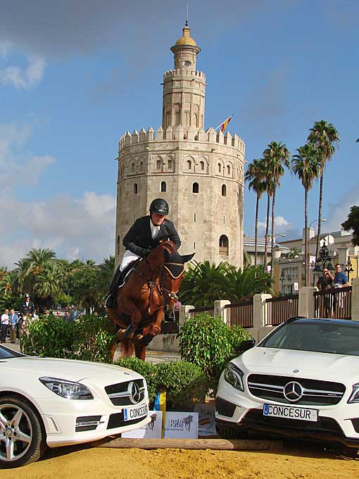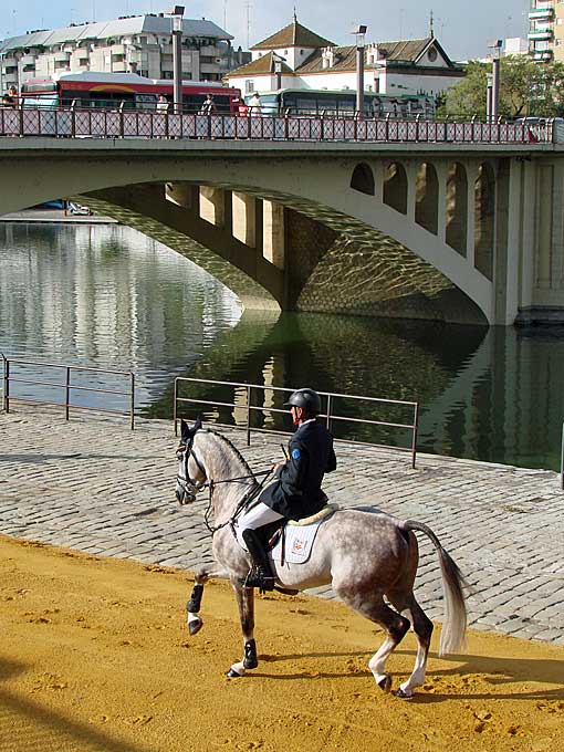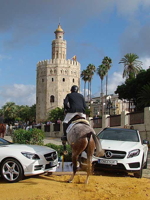 12 de Septiembre de 2014 Como saben (o no ) los caballos siempre ha formado una parte importante de mi vida y tiene un sitio especila en esta página. Con gran afluencia de medios ( algunos fotógrafos innnecesariamente temerarios ) y de curiosos se se hizo ayer a las 10 h la presentación oficial de la gran semana anglo-árabe, en un emblemático escenario como es la Torre del Oro, junto al Guadalquivir .- Entre los días 11 y 14 de Septiembre, como les decía tendrá lugar la Gran Semana Anglo-Árabe en el Real Club Pineda de Sevilla. La entrada es gratuita.- La Asociación Española de Criadores de Caballos Anglo-Árabe y el Ayuntamiento de Sevilla organizan este evento con un amplísimo programa de actividades, donde se reunirán unos 200 caballos que se encuentran entre los mejores de España. Destacan la XI Final del Ciclo de Pruebas de Selección de Caballos Jóvenes, , el Campeonato de España de Concurso Completo de Equitación y el III Concurso de Modelos, Aires y Salto en libertad de potros.- Asimismo, esta competición tiene un elemento particular que la diferencia del resto y crea un especial atractivo: es la única en el mundo del deporte que compiten en igualdad hombres y mujeres .-