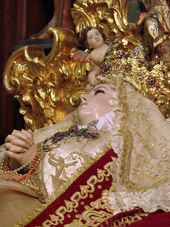 La visita casi obligada al Pozo Santo para ver a la Virgen del Tránsito, con colas de espera propias de una mañana de Semana Santa , para ver una escena al mas puro estilo rococo ( la cama como verán no es de Ikea precisamente ) , en una exquisitez conventual que pareciera llevarte a una de las estancia del propio Cielo , dentro de un marco absolutamente incomparable.-