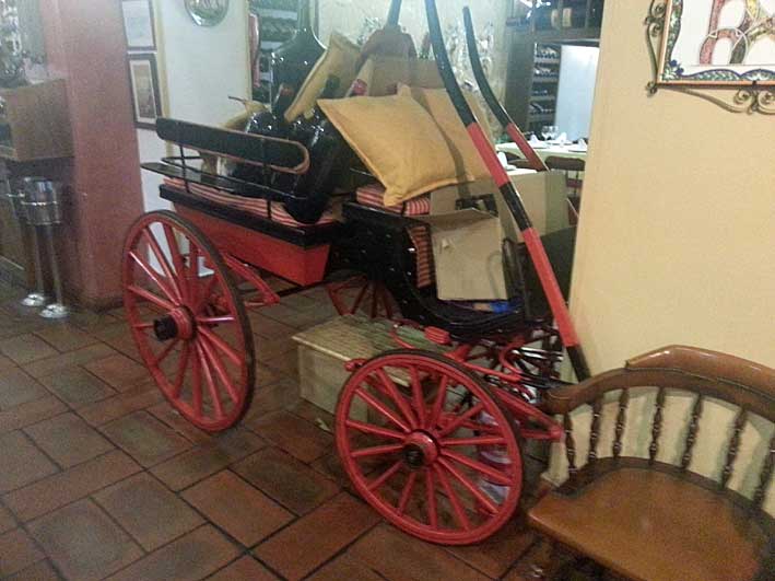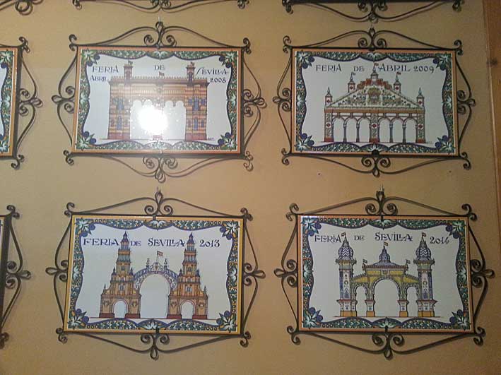 En La Montanera, en sus amplias dependencias , tambien hay una curiosa colección de azulejos de todas las portadas de Feria del siglo XXI; asi como un coche de caballos, una jardinera que hoy está de mero adorno, ( el único que hay en Sevilla ) pero que hace muchos años, en los dias de Feria la esperaba un caballo en la puerta del establecimiento con su guarnición al que lo enganchaban a la misma , y se iban y regresaban del Real .-