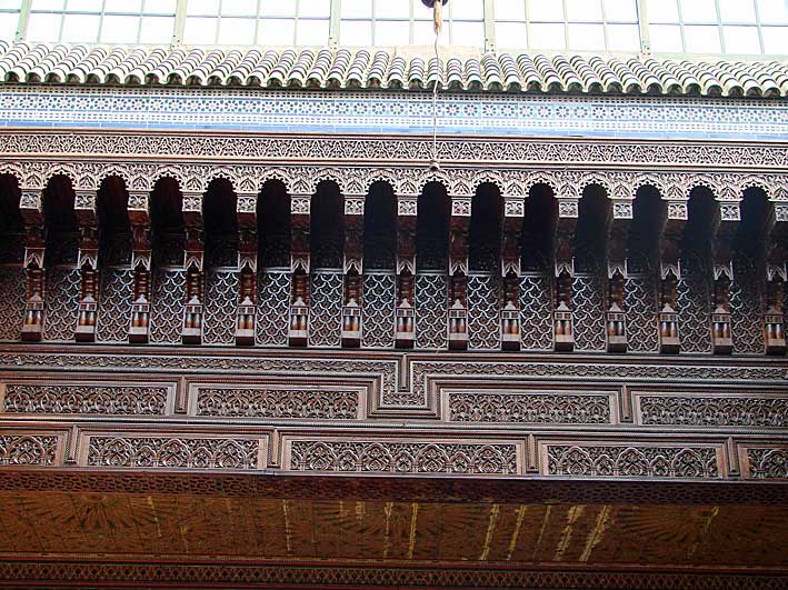 por una montera de cristal, tiene cuatro galerías con artesonados soportados