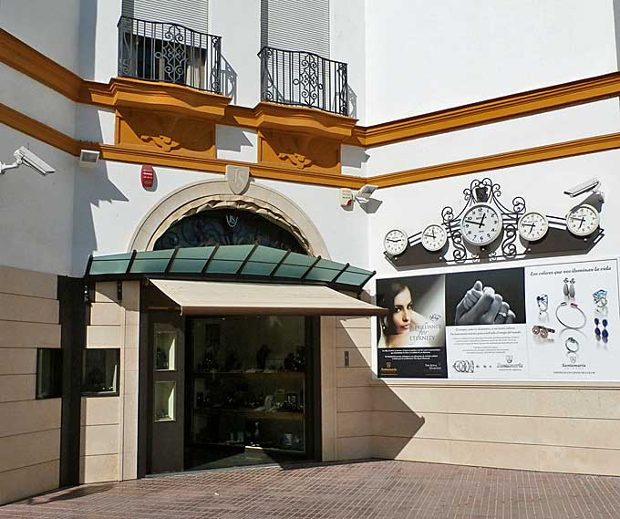 En el muy transitado Edificio Cristina de Sevilla, no se si habrán reparado que en la puerta de unos de sus muchos establecimientos comerciales que allí se encuentran , hay cinco relojes ( o un reloj con cinco esferas como usted prefiera ) . Posiblemente pudiera ser , que este reloj por su número de esferas le recordará posiblemente al famoso El Cronómetro , el majestuoso Longines de la calle Sierpes , que tiene una mas, en total son seis, pero las seis esferas marcan la misma hora , nuestra hora local de Sevilla .-