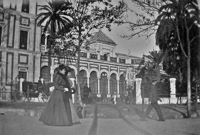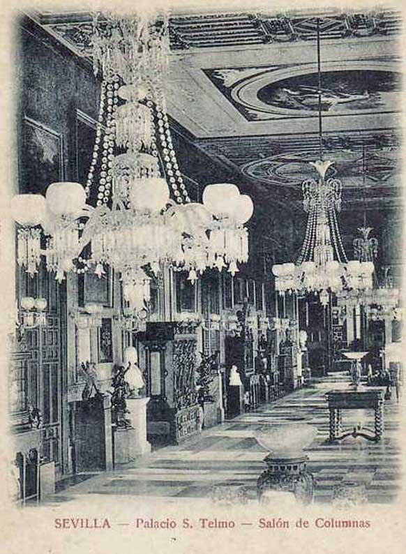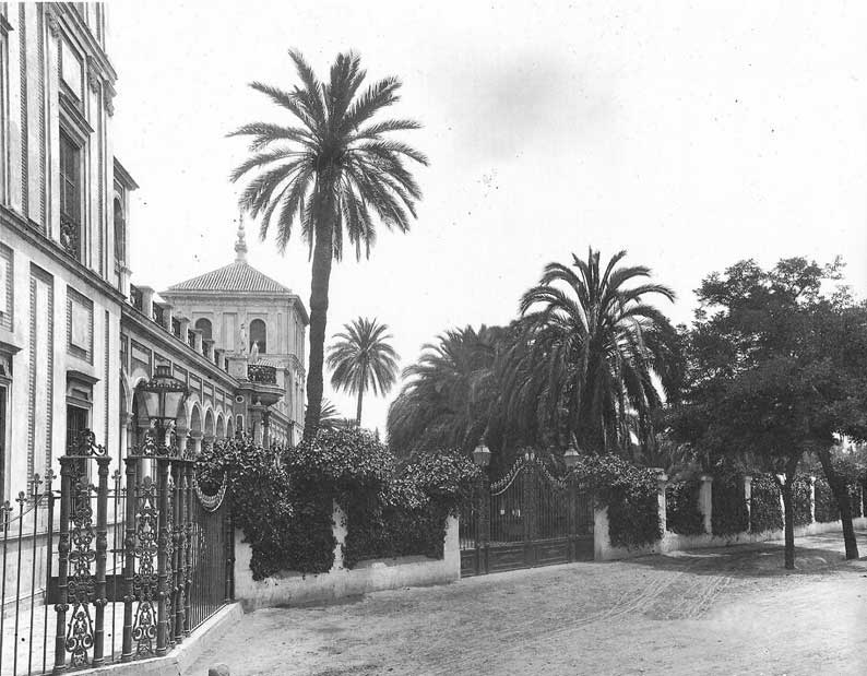 teniendo al fondo una de la fachada sur del Palacio de San Telmo .-