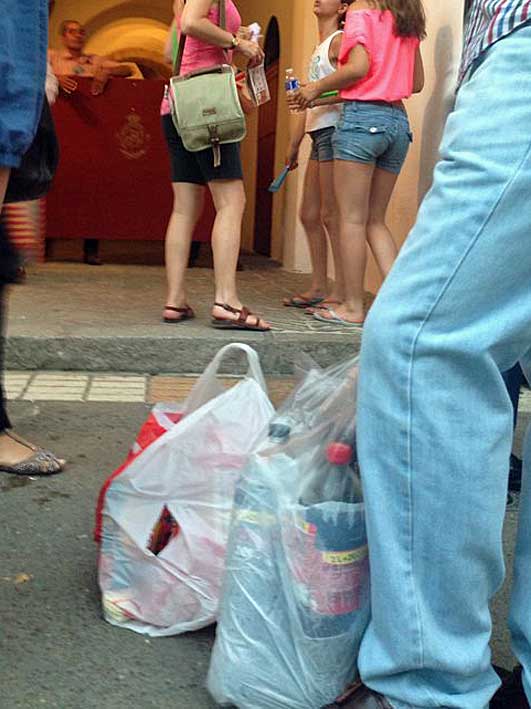 en un dominguerimos playero, o con las bolsas con vasos de plástico,