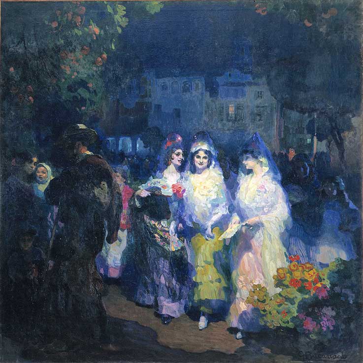 En 1922 Viajó a Suecia para realizar los decorados y figurines de la ópera Carmen, durante su estancia en Estocolmo contrajo matrimonio con la pintora sueca Elsa Jernas. En 1928 elaboró los carteles de la Exposición Iberoamericana de Sevilla , entre otras cartelografías.- En 1933 se marchó a vivir a Madrid, durante la Guerra Civil fue evacuado a las islas Madeira . Finalmente retornó a Sevilla en 1945. Durante el periodo de posguerra recorrió muchos pueblos andaluces que plasmó en sus cuadros como Carmona, Arcos de la Frontera, Aracena o Estepona. Desde entonces vivió en la capital andaluza, hasta su muerte en tal día como hoy 7 de Enero de 1971.- Fue catedrático honorario de la Academia de Santa Isabel de Hungría, Medalla de Oro de la misma entidad y miembro de la de Bellas Artes de San Fernando, teniendo una calle en Sevilla . Tambien fue un gran ceramista aqui tiene unas muestras ( VER , VER ) .- |