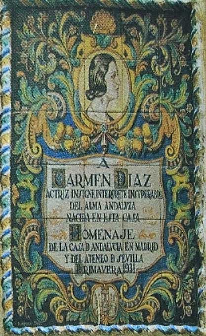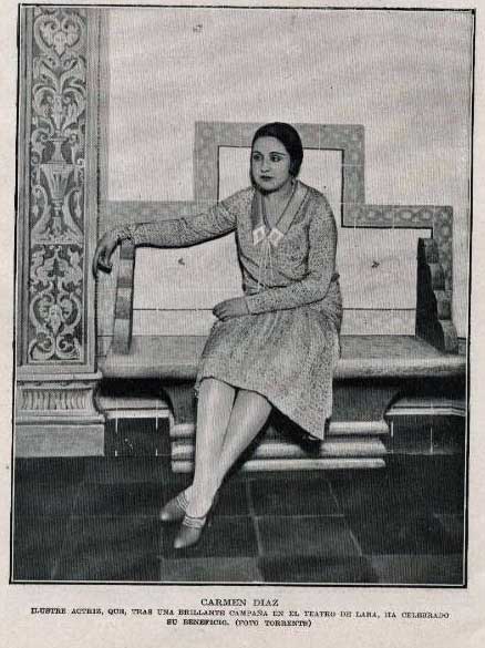 Carmen Diaz Galvez nacio en 1896, Comenzó sus pasos en la compañia de Maria Guerrero , para posteriormente montar su compañia propia . Fue una de las actrices más notables del panorama teatral en la España de las décadas de 1920 y 1930. Destacó especialmente por sus interpretaciones de varias piezas de los Hermanos Álvarez Quintero, como El genio alegre (1928) o Mariquilla Terremoto (1930). aunque también se subió al escenario con obras de Jacinto Benavente, Manuel Linares Rivas, Luis Fernández Ardavín (La hija de la Dolores, 1927), etc.-