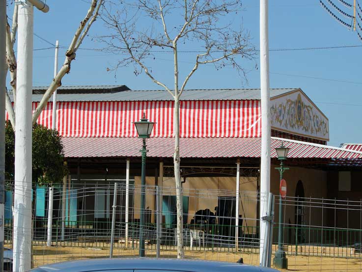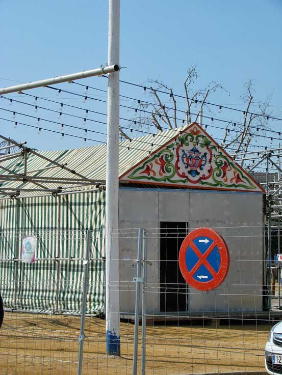 Aquí les dejo el plano original por si quieren hacer una comparativa de como va del proyecto a la realidad Reparen en el detalle. Aqui mucha junta ( con minúscula ) de Andalucía, muhco andaluces y andaluzas, y la única bandera que ondea al día de hoy es la de España, como es costumbre y simbolo en la construcción de que se ha "cubierto aguas" ( máximo de altura ) sin ningún accidente . ( por cierto no se ve ningún escudo del otro equipo de la ciudad ) Una escena casi feriante en pleno mes de Febrero No les exageron lo mas mínimo si les digo que a falta de la decoración interna ya hay muchas casetas tanto colectivas, como privadas están practicamente montandas, y todavía no hay un paso en un iglesia para montarlo. La priostía feriante es mas precoz .-