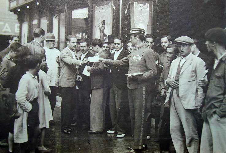 . En la foto vemos un hombre anuncio de Segarra repartiendo publicidad en