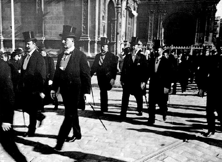 e impecable etiqueta con chaque, chistera y bastones de mando, no para