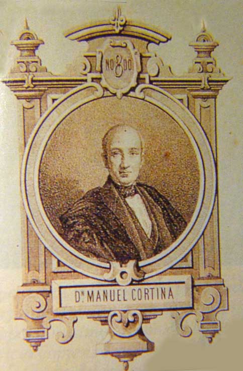 1 de Agosto de 2015 Manuel Cortina y Arenzana nace en Sevilla tal dia como hoy, el 1 de Agosto de 1802 . Se linceció en leyes en 1818 .- Siempre fue defensor de la ideas liberales en el Trienio Liberal . Acompañó a Fernando VII en su traslado de Sevilla a Cádiz huyendo de los Cien mil Hijos de San Luis ( VER ) , siendo herido en la defensa del Trocadero .- Fue alcalde de Sevilla en 1839, que bajo su mandando asitió a la fundación de la Fábrica de la Cartuja .Al año siguiente marcha a Madrid donde es nombrado miembro del cuerpo de Letrados Consistoriales del Ayuntamiento de Madrid. Fue diputado por Sevilla desde 1840 hasta 1853 en diferentes etapas y elecciones .- Durante la regencia del general Espartero es nombrado Ministro de la Gobernación entre 1840 y 1841, siendo además Presidente del Congreso del 1 al 20 de mayo de 1843 . Constribuyó en la caida del Espartero se opuso firmemente a él y conspiró para su caída. Estuvo preso en Madrid y exiliado hasta 1846 y posteriormente indultado .- Regresa a Madrid y es nombrano decano del Colegio de Abogados de Madrid ,en 1848 cargo que ocuparia hasta su muerte el 12 de Abril de 1879 , con una exitosa carrera como letrado de la aristocracia y casas reales , estando enterrado en el cementerio de San Fernando de Sevilla .- |