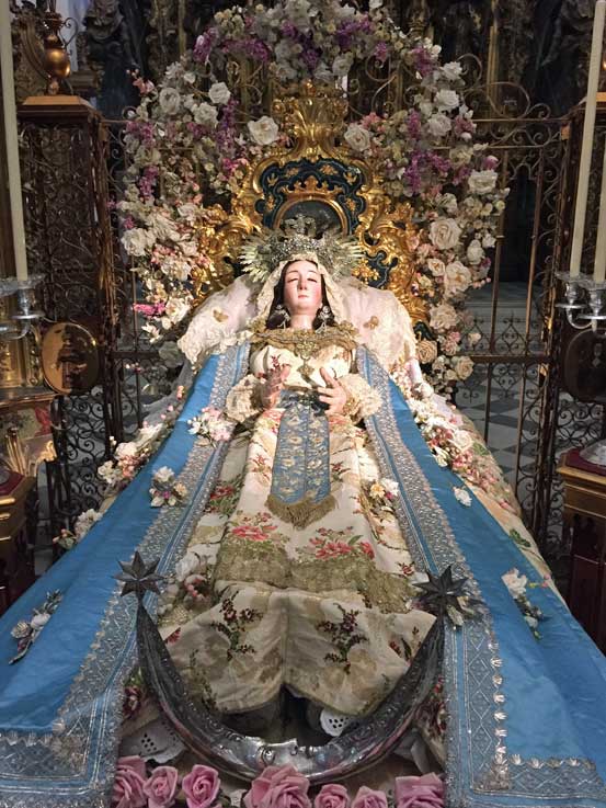 La visita casi obligada al Pozo Santo para ver a la Virgen del Tránsito, con colas de espera propias de una mañana de Semana Santa , para ver una escena al mas puro estilo rococo ( la cama como verán no es de Ikea precisamente ) , en una exquisitez conventual que pareciera llevarte a una de las estancia del propio Cielo , dentro de un marco absolutamente incomparable.-
