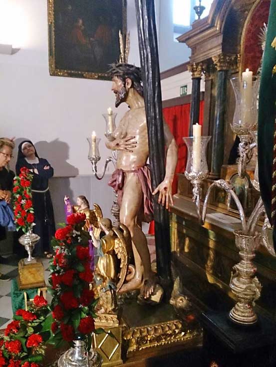 Este año el Cristo Varón de Dolores, obra de Pedro Roldan de la Iglesia del Hospital del Pozo Santo permanecerá expuesto en un altar efímero estos días en los que el convento celebra tanto, en las visperas, la festividad de la Asunción y la novena a la Virgen del Tránsito.-