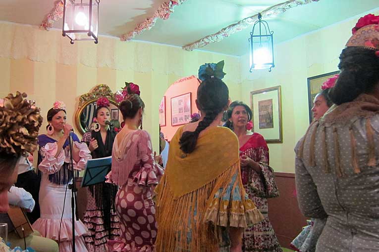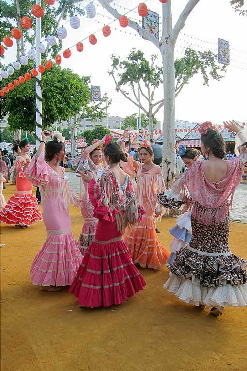 decenas de miles de señoras y señoritas vestidas de flamenca