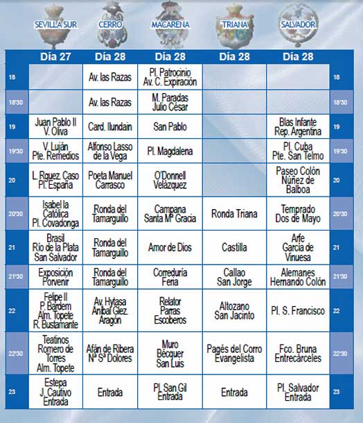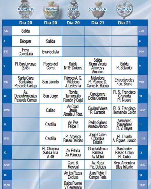 HORARIOS DE LAS SALIDAS Y ENTRADAS DE LAS HERMANDADES DEL ROCIO DE SEVILLA 2015