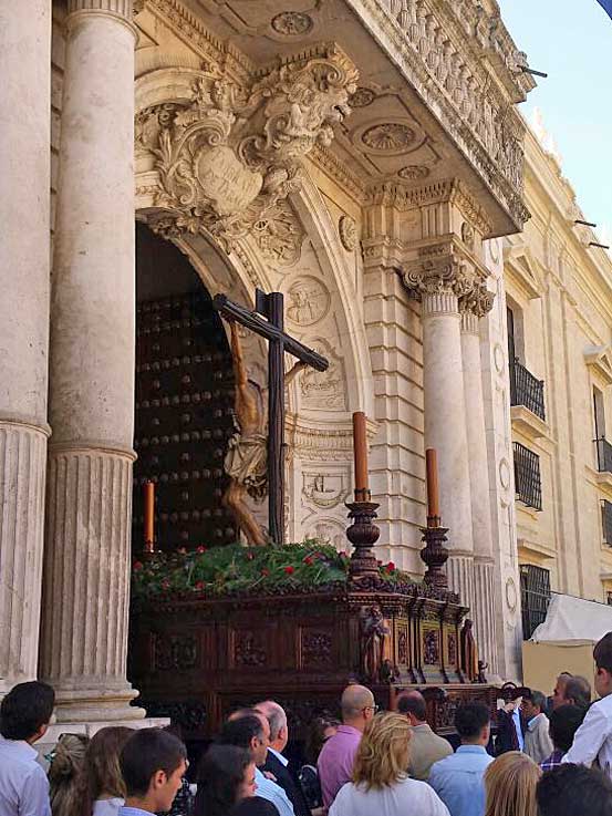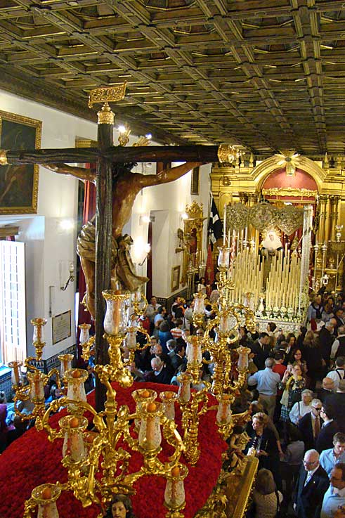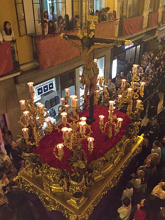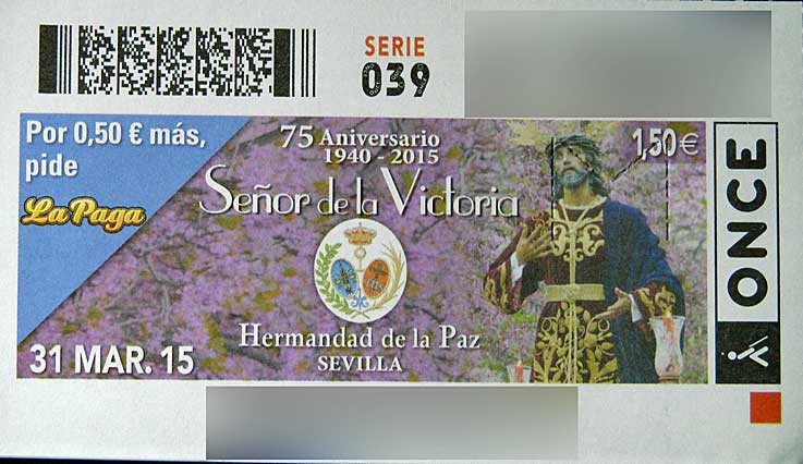 Un adelanto del martes santos en le tradicional traslado de los Sagrados Titulares de la Hdad de los Estudiantes desde su capilla al rectorado de la Universidad de Sevilla Hoy cupón conmemorativo de 75 aniversario del Señor de la Victoria de la Hdad de la Paz de Sevilla